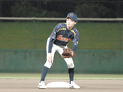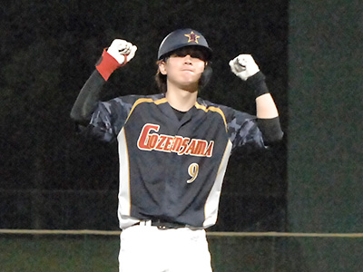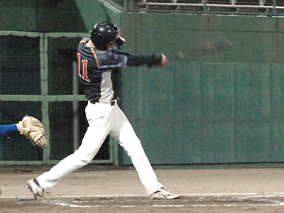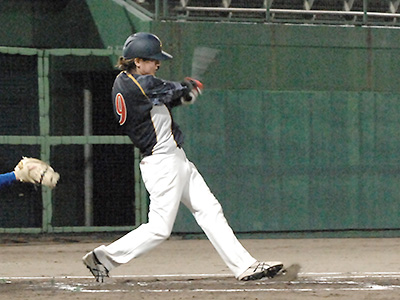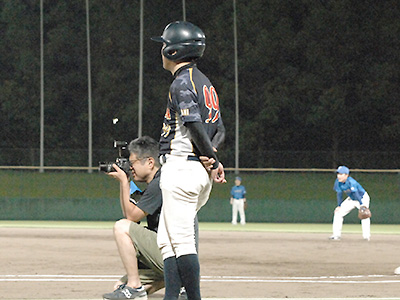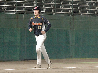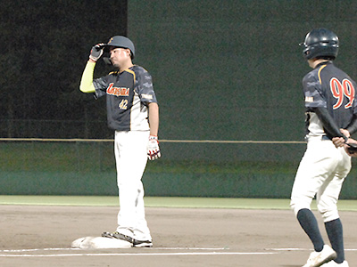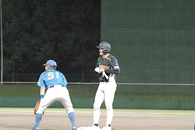 この回先頭の河口選手がセンター前へのクリーンヒットで出塁します。