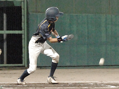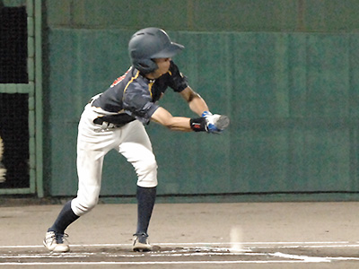 先頭河口選手が死球をもらい無死1塁で、井田選手がきっちり送り、得点圏にランナーを進めます。