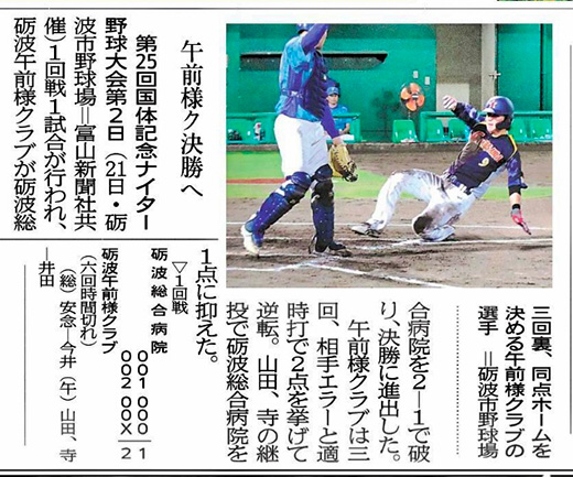 相手は、本大会で何度も対戦した永遠のライバル砺波市立総合病院。
