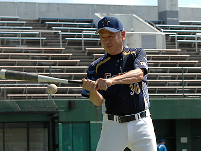 後のない午前様は、永原監督が代打で打席に立ちます。