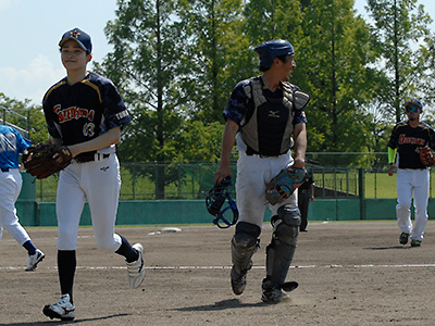 北河投手の制球が安定し、病院打線を三者凡退に打ち取ります。