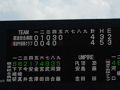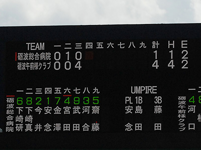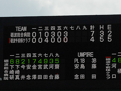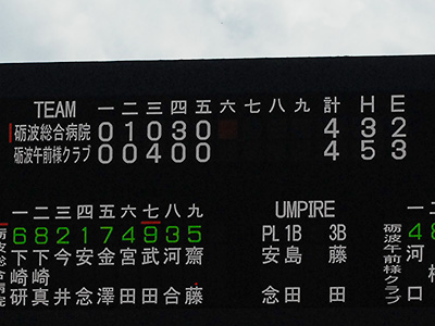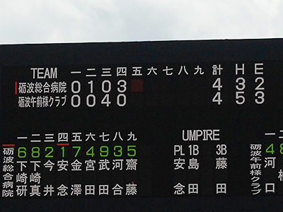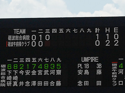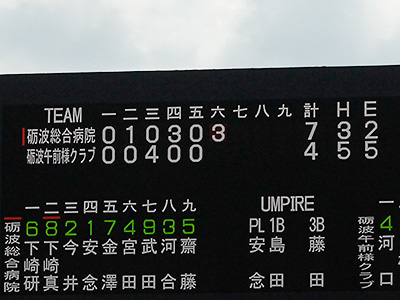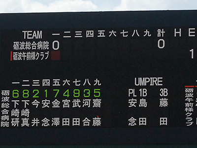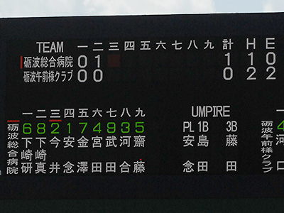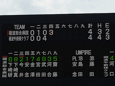 砺波シリーズ2戦目は病院に軍配が上がり、1勝1敗と勝敗は来週の3戦目に持ち越されました。