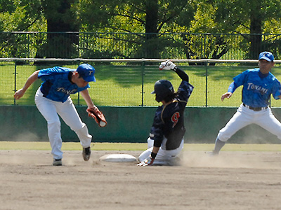 打った打者はファーストでアウトにしますが、その間に二人目がホームインし4-6と2点差に広げられます。