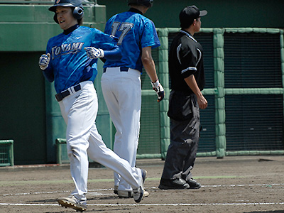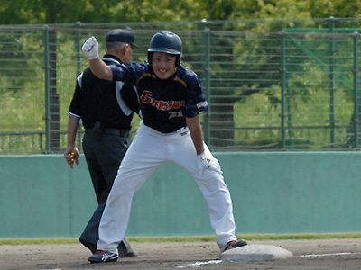 この回先頭の西田選手は、エラーを呼び込み2塁へ進塁します。