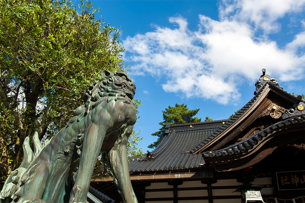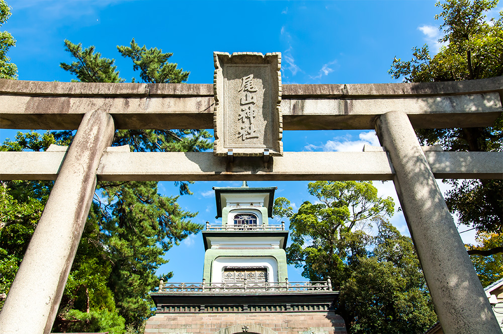 尾山神社独特の西洋っぽい門をくぐると、境内が見えます。