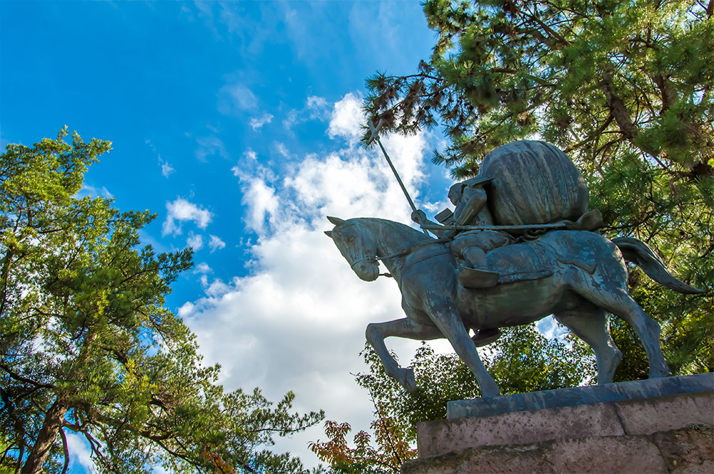 比較的高い台座の上にあり、こういった場合は「青空背景」で撮影します。
