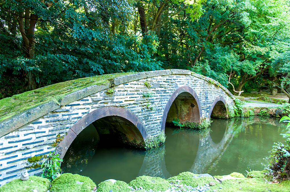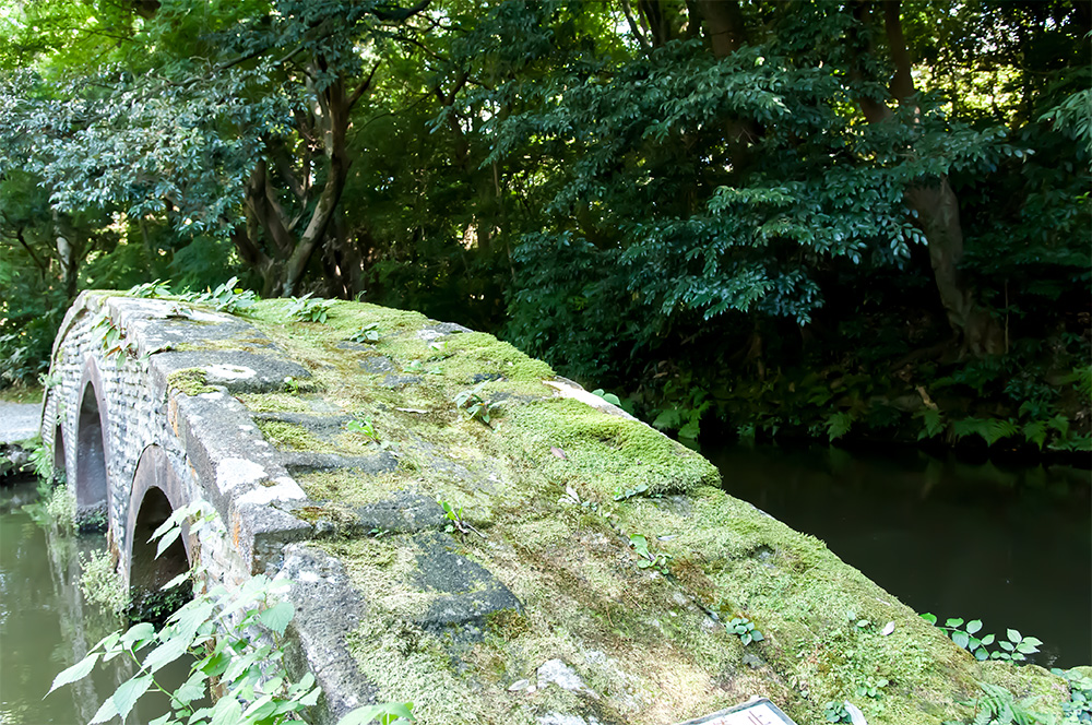 この橋は「渡ってはいけません」となっており、橋の上には苔が橋を着色していました。