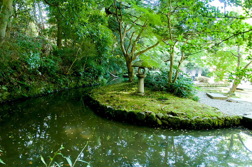 利家公の銅像からさらに奥へ進むと、庭園がありました。