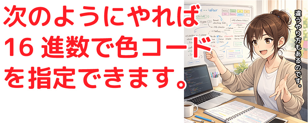 16進数の色コードが使え、rgba()と同様に半透明にできます。