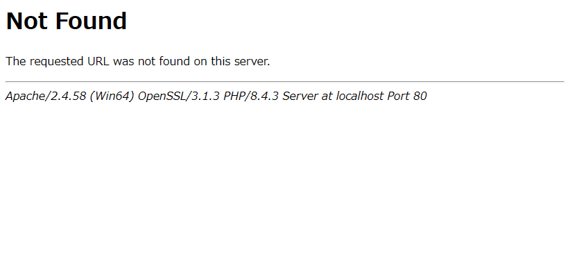 404 not foundは、該当するページがない場合に表示される、警告メッセージです。
