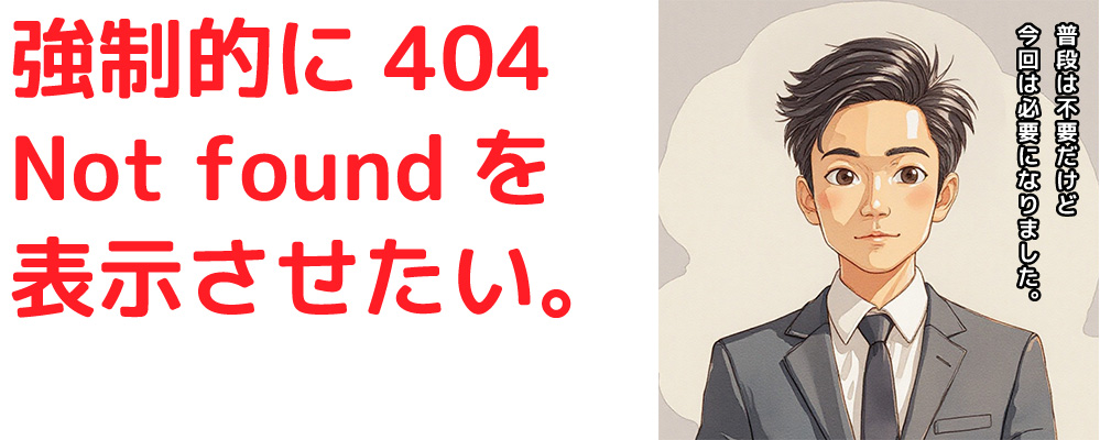 普段は404が表示されないように気おつけていますが、強制的に404にするとなると、どうやればできるのかわからないものです。