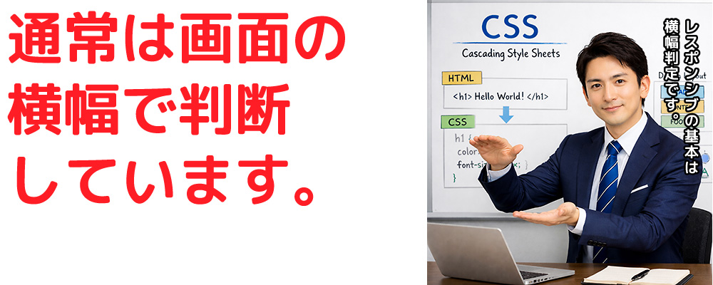 レスポンシブをコーディングする場合、画面の横幅で端末を判断します。