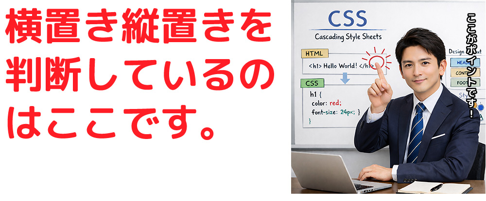 スタイルシートで、横置きと縦置きを判断しているのは以下の部分です。
