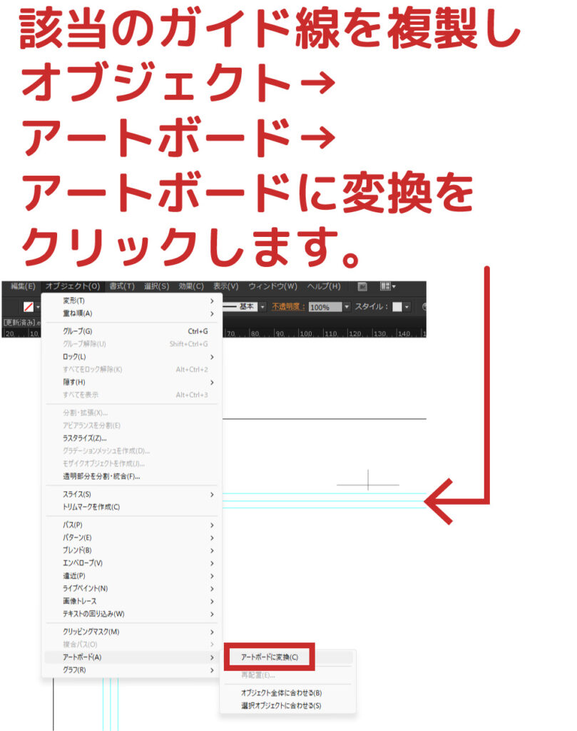 ちなみに、ガイド戦は複製してからアートボードに変換したほうが良いです。