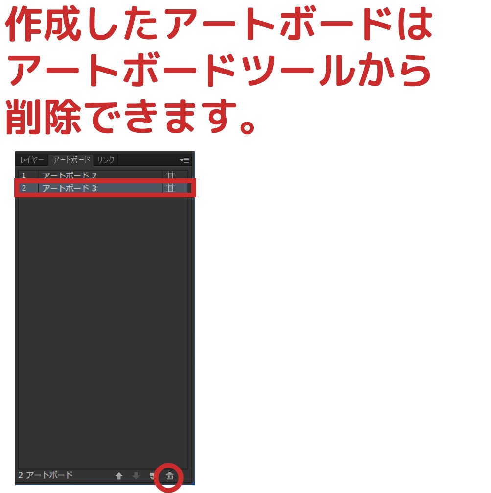 トンボなし画像を作成するだけの目的の場合は、保存せずにIllustratorを保存すれば、作成したアートボードも消えますが、保存してしまった場合などは、以下のやり方で削除することができます。